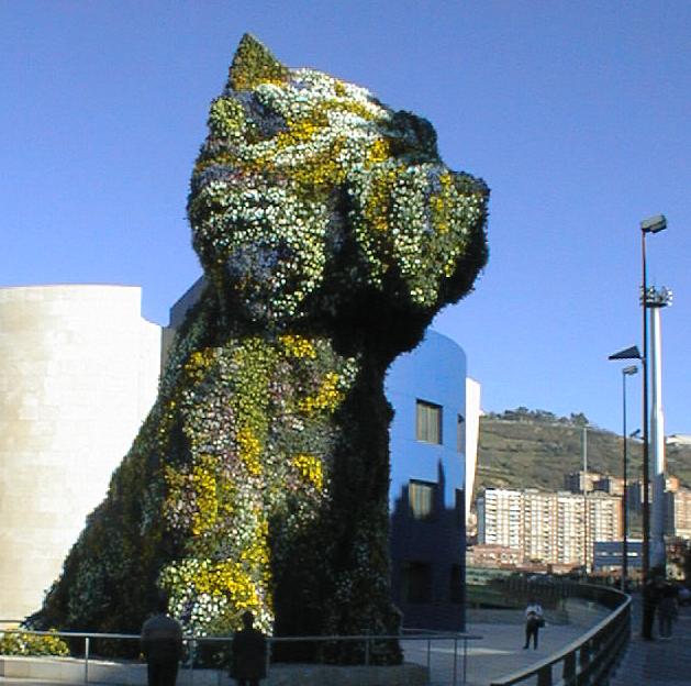 out of pansies. I guess the big pup is a cultural icon in the Basque