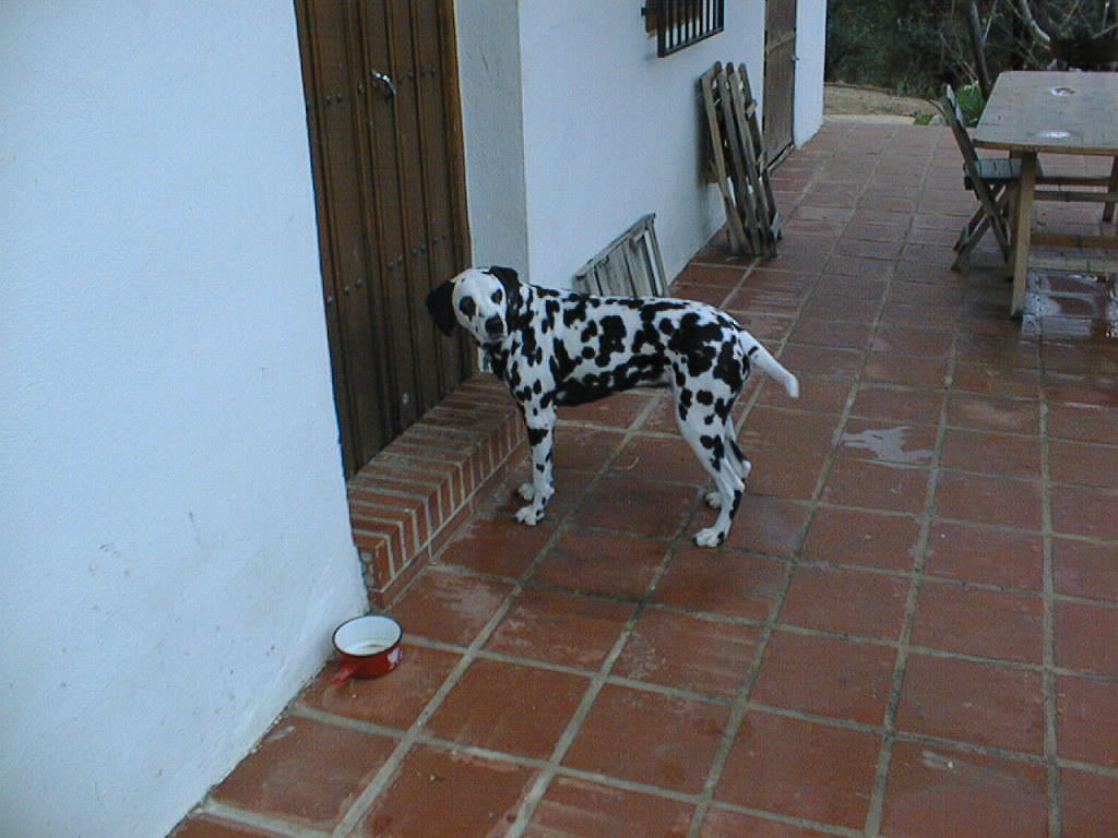 porch of Casa Rural -- he wants in because it is cold out. Of course